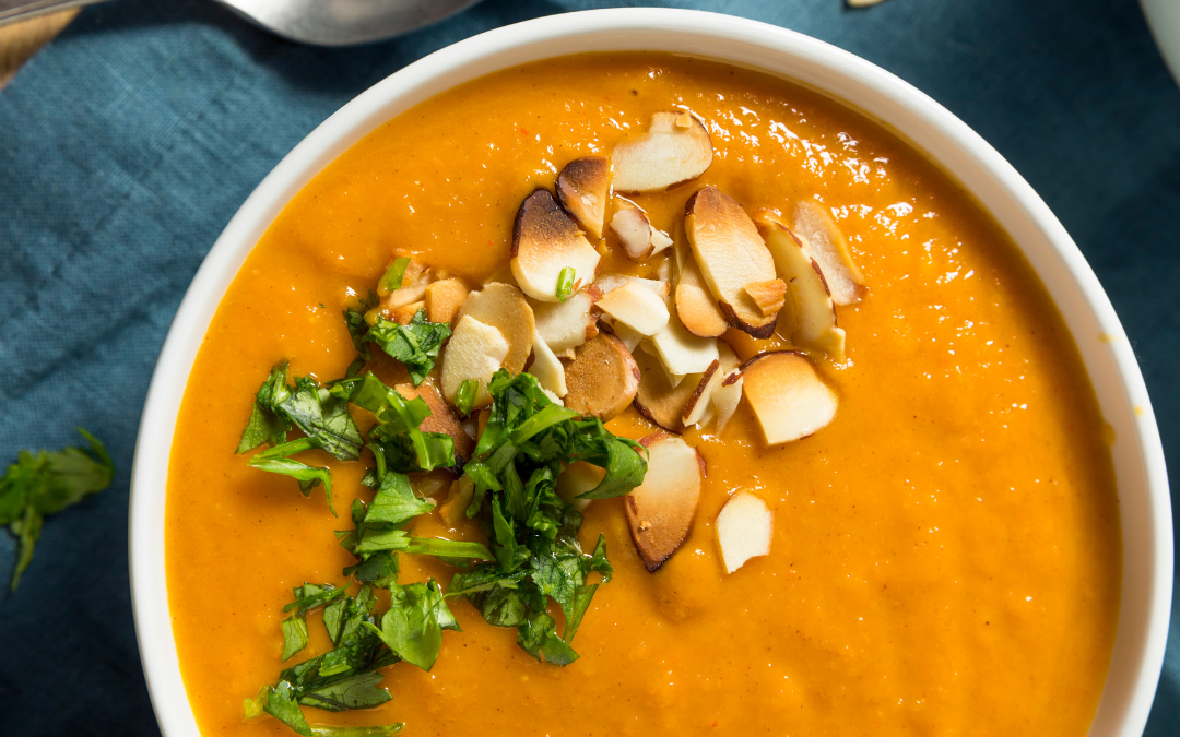 Refogando os Ingredientes: Em uma panela grande, adicione um fio de azeite e aqueça em fogo médio. Refogue a cebola e o alho até que fiquem macios e levemente dourados, cerca de 5 minutos. Adicionando a Abóbora e Gengibre: Adicione os cubos de abóbora e o gengibre ralado à panela, refogando por mais 5 minutos. Isso ajudará a liberar os sabores. Cozinhando a Sopa: Adicione o caldo de legumes à panela e leve à fervura. Depois que começar a ferver, reduza o fogo e cozinhe por cerca de 20 minutos, ou até que a abóbora esteja macia. Batendo a Sopa: Use um liquidificador ou um mixer de imersão para bater a sopa até que fique cremosa e homogênea. Se necessário, adicione um pouco mais de caldo ou água para alcançar a consistência desejada. Tempere com sal e pimenta a gosto. Servindo: Sirva a sopa quente, decorando cada prato com sementes de abóbora.4. Salada de Grão-de-Bico com Vegetais Assados