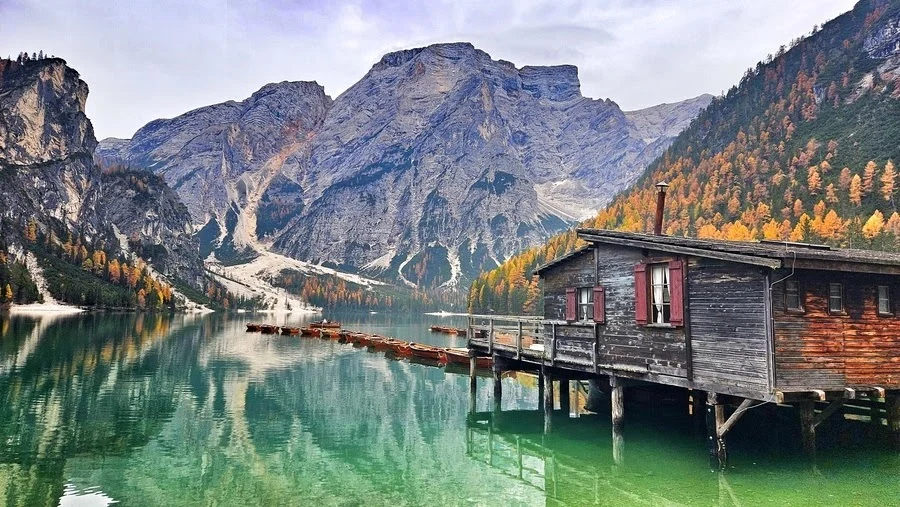 Envolto pelas Dolomitas, o Lago di Braies é um dos cenários mais icônicos da Itália. No outono, a combinação de águas verde-esmeralda, florestas douradas e picos já salpicados de neve cria um verdadeiro cartão-postal alpino. As trilhas ao redor do lago ficam mais tranquilas, e o ar puro e frio torna a caminhada ainda mais revigorante.