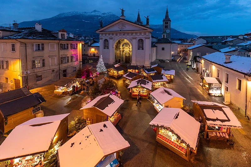 Aosta, com seu charme alpino e herança romana, oferece uma experiência natalina única. O mercado de Natal é montado nas ruínas romanas da cidade, criando um cenário mágico e histórico. Conhecido como