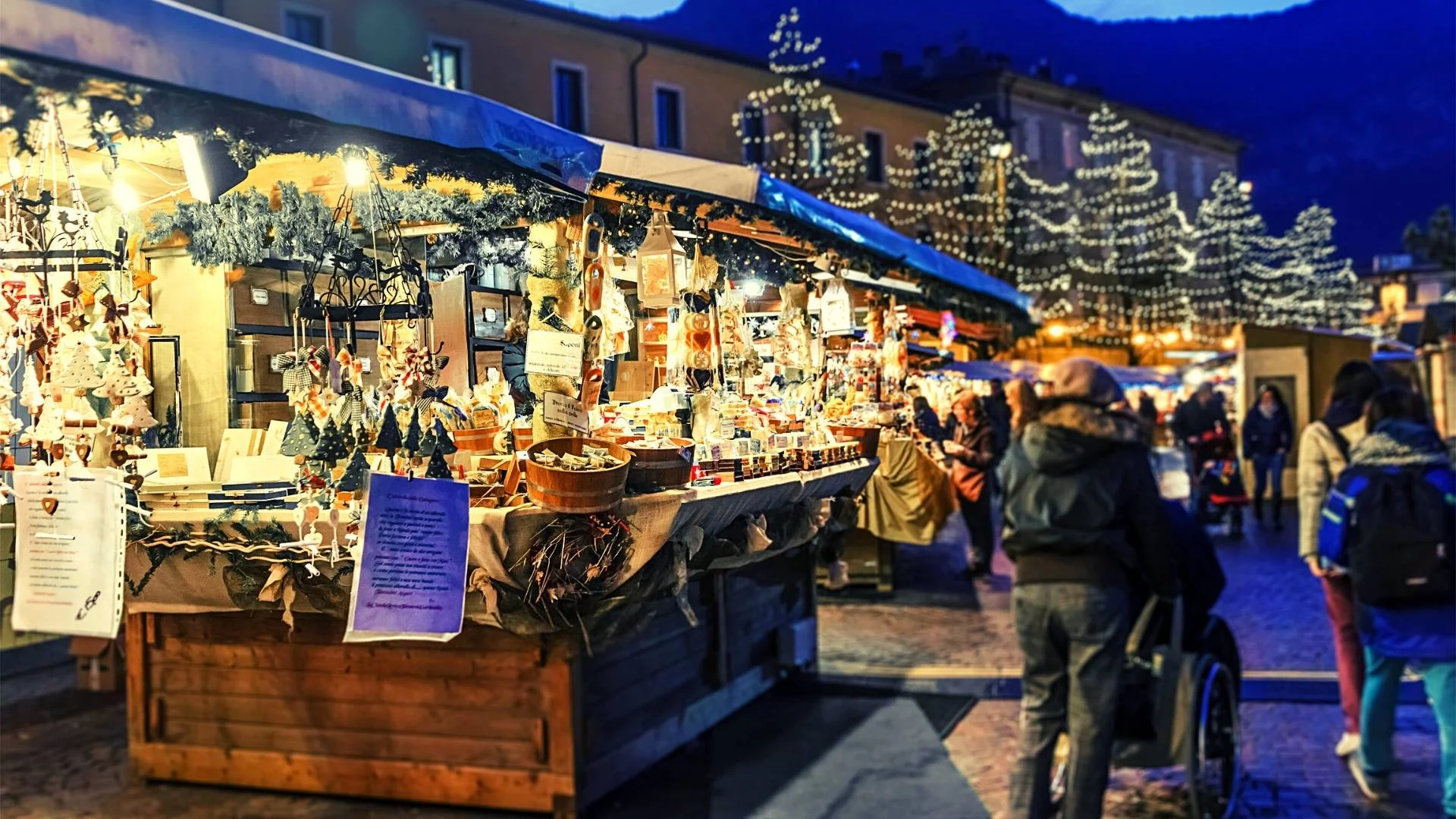 - Como: Conhecida por seu belo lago e montanhas ao redor, Como oferece um mercado de Natal que parece saído de um conto de fadas. O Mercatino di Natale de Como é famoso por suas decorações exuberantes e sua atmosfera acolhedora, com barracas que vendem presentes, comida e vinhos típicos.