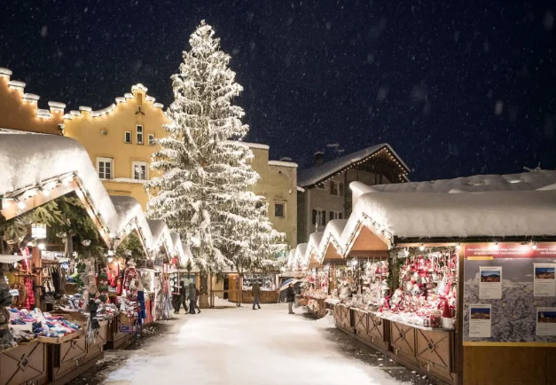 A presença de neve nas montanhas ao redor deixa tudo ainda mais mágico, especialmente à noite, quando as luzes do mercado brilham sob o céu gelado. Por isso, roupas térmicas, cachecóis e luvas são indispensáveis para aproveitar o passeio com conforto.