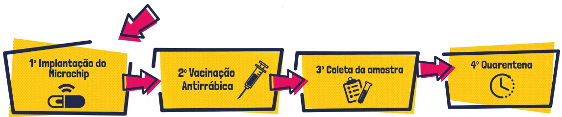 O primeiro passo é a microchipagem do seu animal. O microchip deve ser compatível com o padrão ISO 11784/11785 e deve ser implantado antes da vacinação contra a raiva.2 - Vacinação contra Raiva