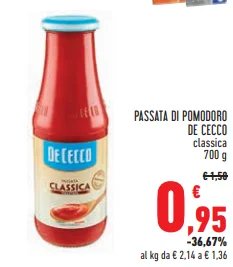 - PASSATA DI POMODORO DE CECCO classica 700 g - €0,95