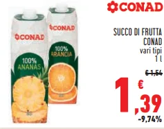 - SUCCO DI FRUTTA CONAD vari tipi 1 l - €1,39
