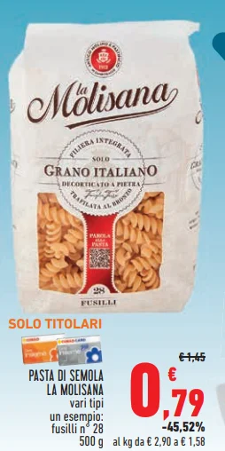 - PASTA DI SEMOLA LA MOLISANA 500 g - €0,79