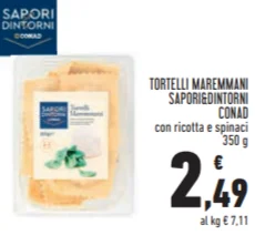 - TORTELLI MAREMMANI SAPORI&DINTORNI CONAD con ricotta e spinaci 350 g - €2,49 (Tortelli Maremmani SAPORI&DINTORNI CONAD com ricota e espinafre, 350 g)