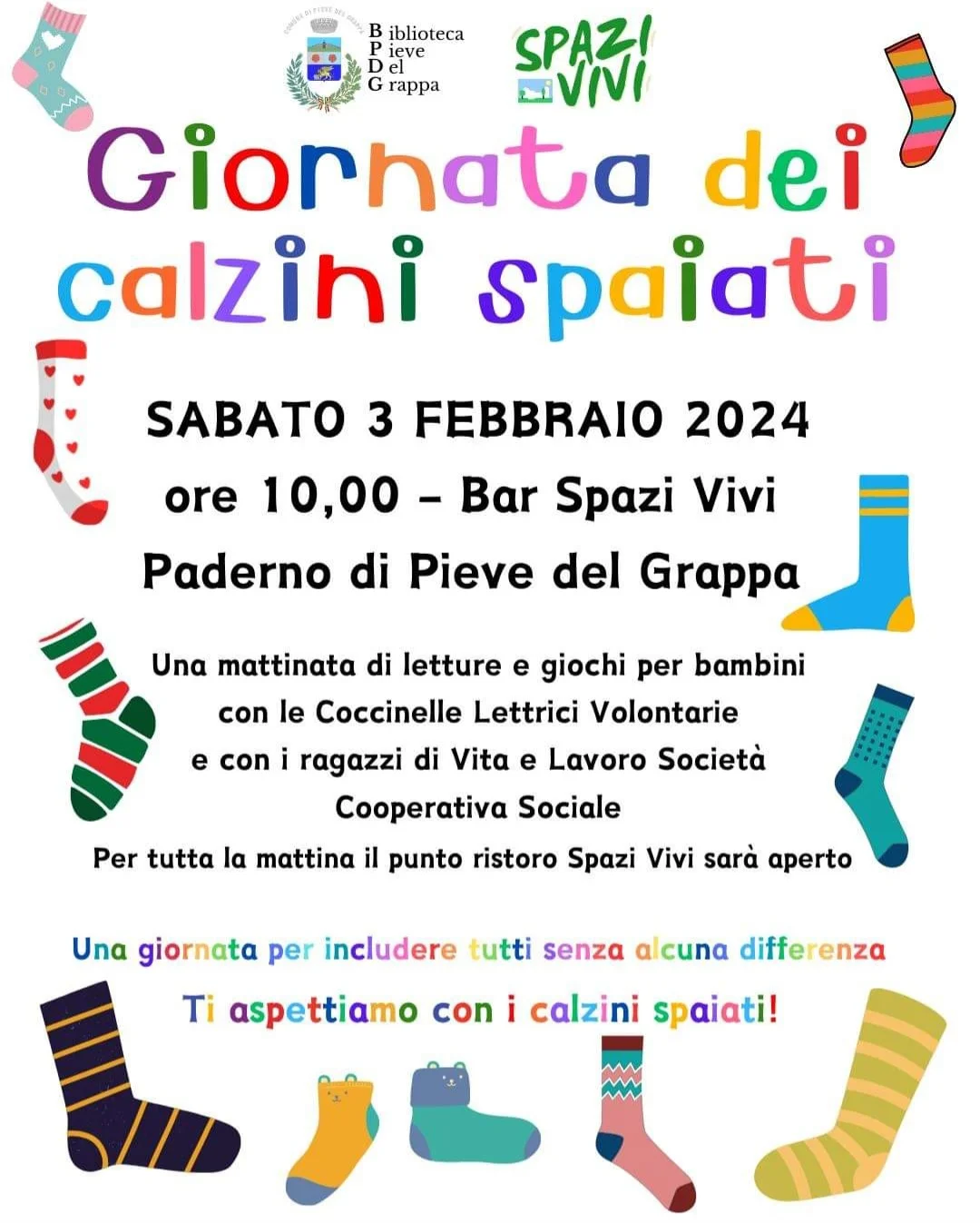 Bem ao norte, na encantadora comune de Pieve del Grappa, o clima de festa está prestes a começar! Hoje, todos estão convidados para uma celebração cheia de alegria e diversão. As crianças terão um verdadeiro paraíso de brincadeiras, enquanto os jovens e adultos exibirão suas meias incrivelmente fofas e coloridas. Um grupo voluntário estará presente para envolver a todos com leituras encantadoras e histórias que certamente arrancarão sorrisos. Prepare-se para uma festa inesquecível, onde a alegria se entrelaça com a diversidade das meias, criando um ambiente acolhedor e cativante para todas as idades!