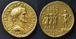 Galba, um dos "Quatro Imperadores", estampado na moeda romana