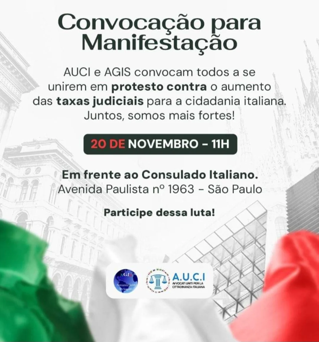 Auci – Avvocati Uniti per la Cittadinanza Italiana, compostas por advogados especializados em processos de cidadania italiana. Ambas as organizações convocam os interessados para um protesto pacífico, que terá