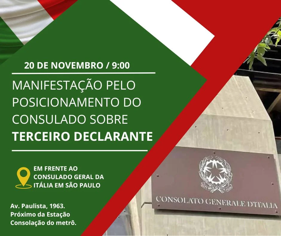 Além desses dois movimentos, uma outra manifestação será realizada no Consulado de São Paulo, também no dia 20, para tratar especificamente do "terceiro declarante". Essa questão já havia sido levantada em um primeiro protesto realizado em 10 de outubro, e agora será retomada, exigindo maior transparência e posicionamento do consulado sobre o tema.