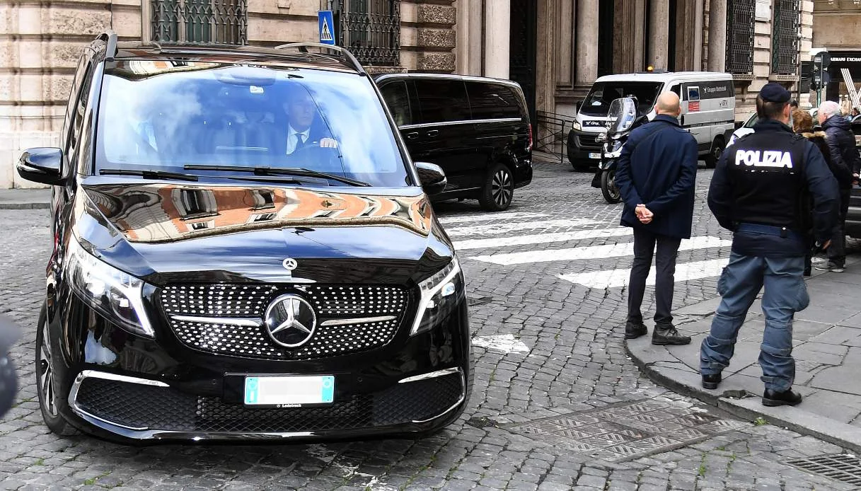 Chegada de Bill Gates ao Palazzo Chigi para encontro com Giorgia Meloni sobre inteligência artificial (Roma – 18 de janeiro de 2024)